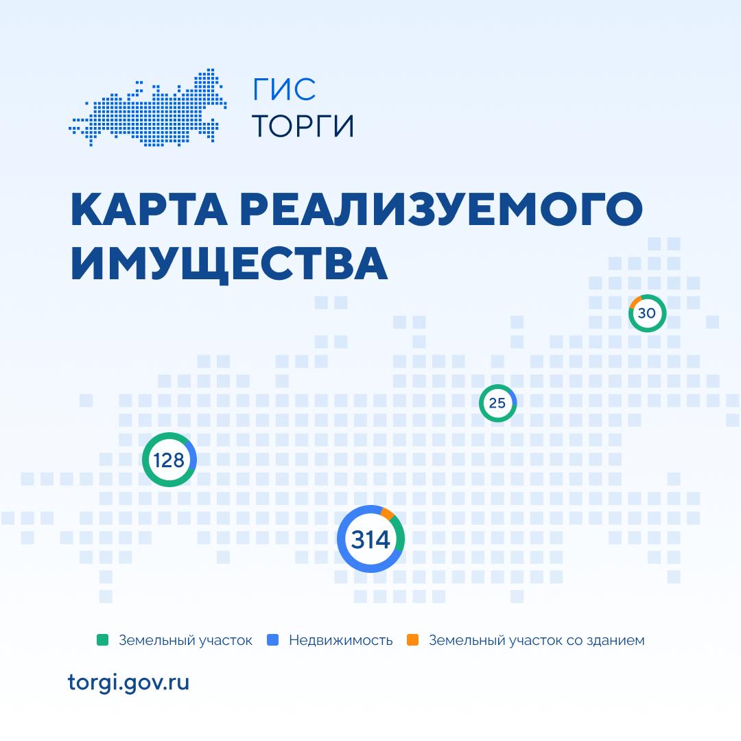 На карте отображаются земельные участки, здания, помещения и другая недвижимость, выставленная на торги.