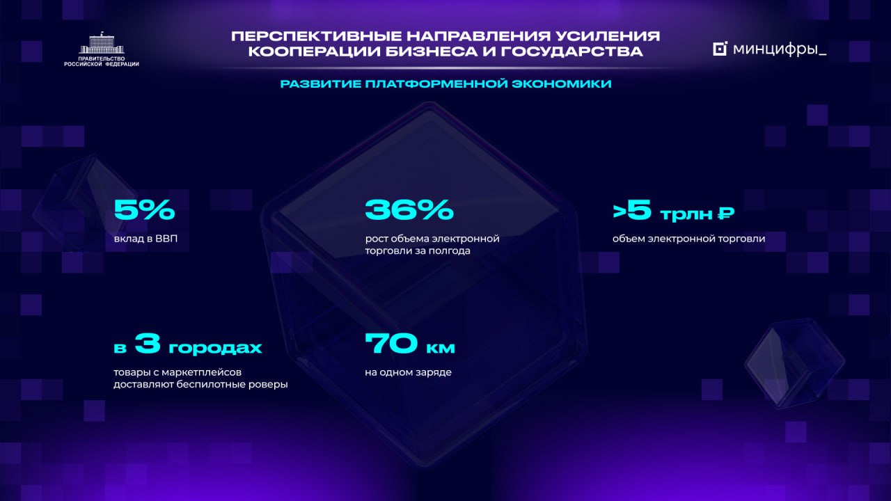 Михаил Мишустин отметил, что отечественная ИТ-индустрия занимает лидирующие позиции по темпам роста ключевых показателей за 5 лет среди всех крупных отраслей. Ее вклад в ВВП за этот период составил 2,4%. В разработке программного обеспечения за первую половину текущего года этот сегмент прибавил треть.