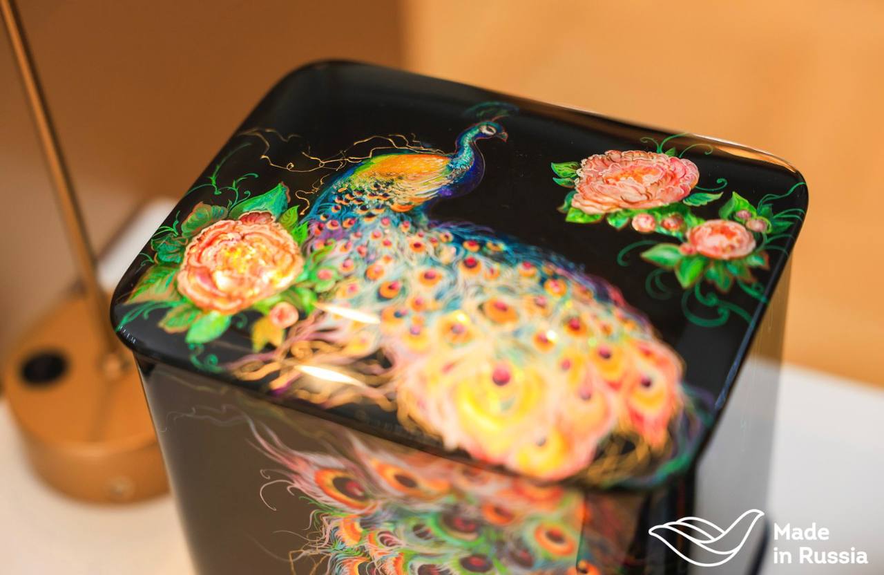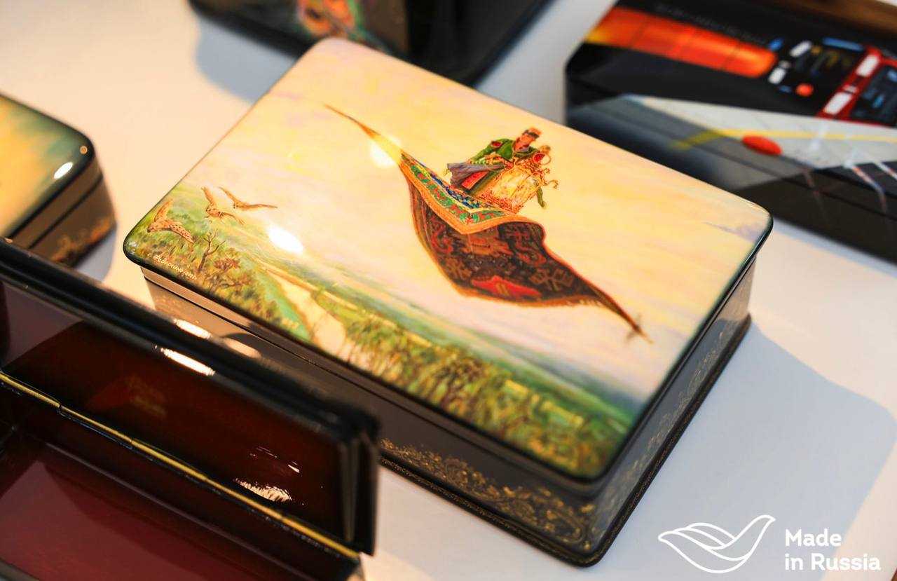«Фабрика Федоскино», ведущий производитель русской лаковой миниатюры, показала на шоу уникальные шкатулки с реалистичной живописью на исторические и жанровые сюжеты. Предприятие расположено в одноимённом селе в 20 км от Москвы. Промыслу более 230 лет, он имел статус поставщика Императорского двора. И в наши дни шкатулки делают вручную по старинной технологии с использованием перламутра и сусального золота.