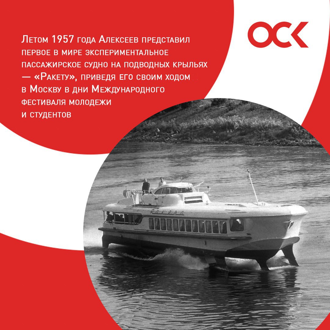Над созданием уникальных катеров Алексеев начал трудиться, работая на одном из предприятий ОСК — заводе «Красное Сормово». Его разработки продолжают использоваться и сегодня, а имя Алексеева остается символом инноваций и достижений в области судостроения.