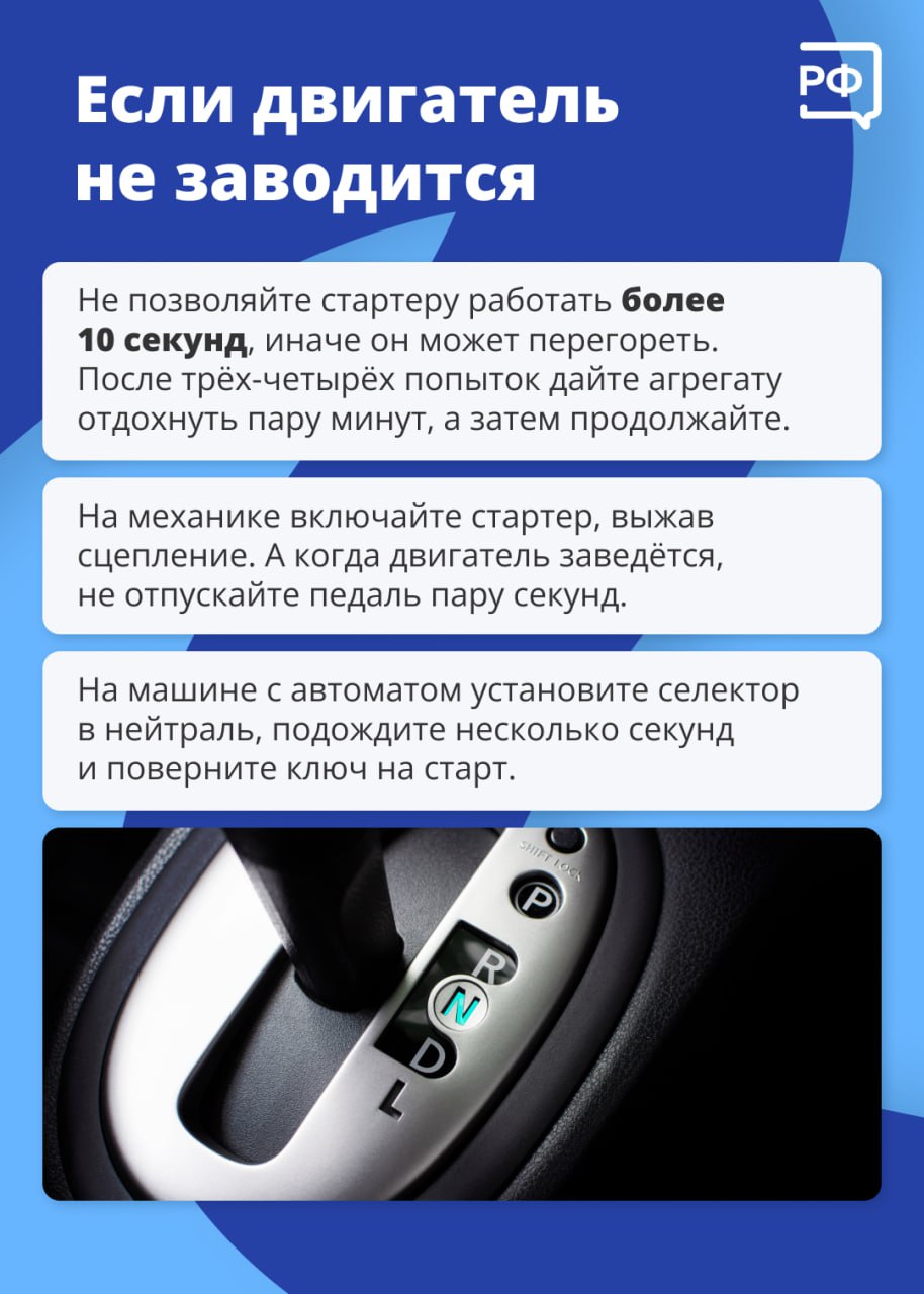 Что делать в этой ситуации и из-за чего ещё может не завестись автомобиль — рассказали в карточках