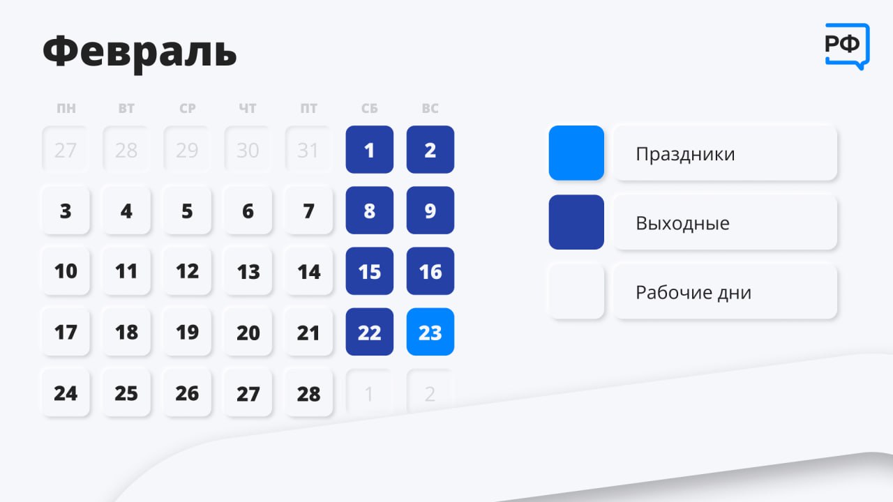 А в феврале и марте праздники выпадают на воскресенье и субботу: дополнительных дней отдыха в эти месяцы не будет — их перенесли на май и июнь.
