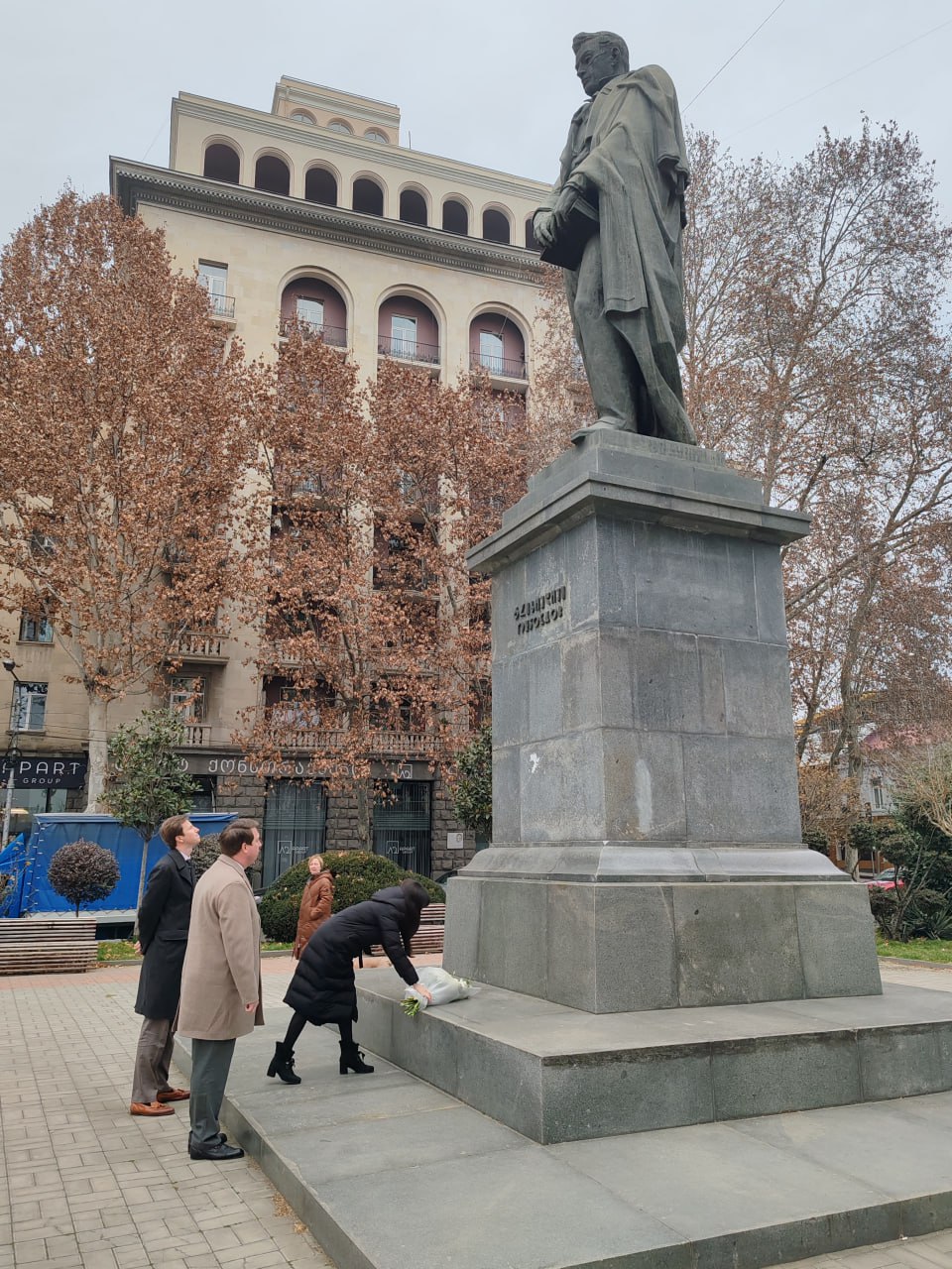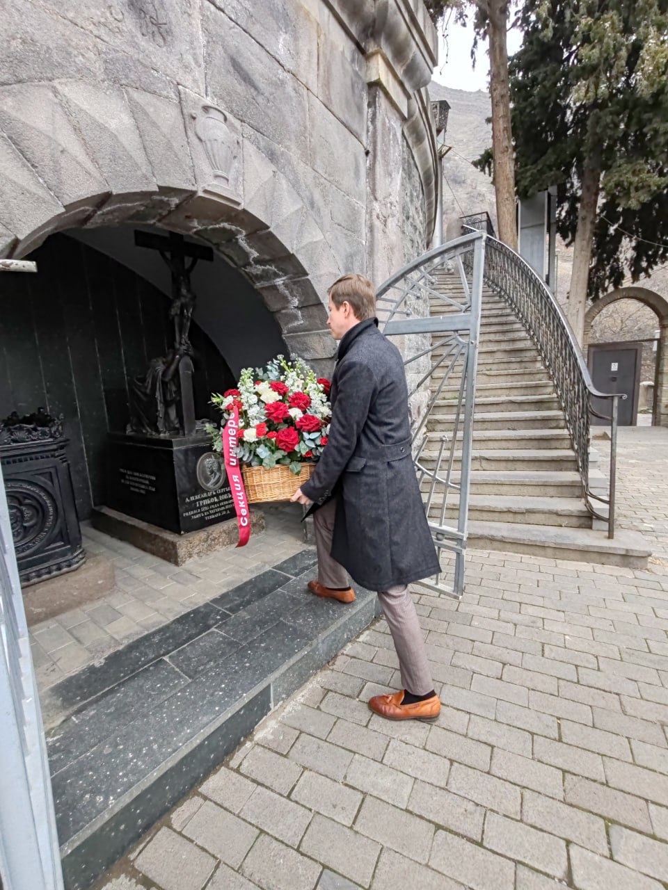 По случаю 230-й годовщины со дня рождения прославленного русского писателя и дипломата сотрудники Секции интересов России возложили цветы к могиле А.С. Грибоедова на Пантеоне Мтацминда и памятнику на набережной Куры. Творческий и жизненный путь Грибоедова был тесно связан с Грузией, где он написал первые части комедии «Горе от ума», встретил свою жену, прекрасную Нино Чавчавадзе, и где завещал быть похоронен.