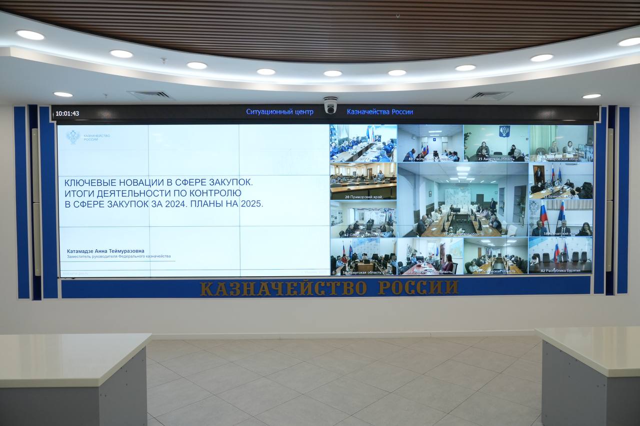 В совещании приняли участие начальник Управления по контролю в сфере контрактных отношений Елена Беликова, сотрудники управления, а также представители территориальных органов Казначейства России.