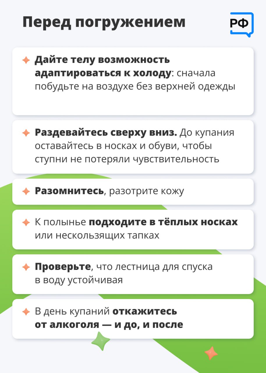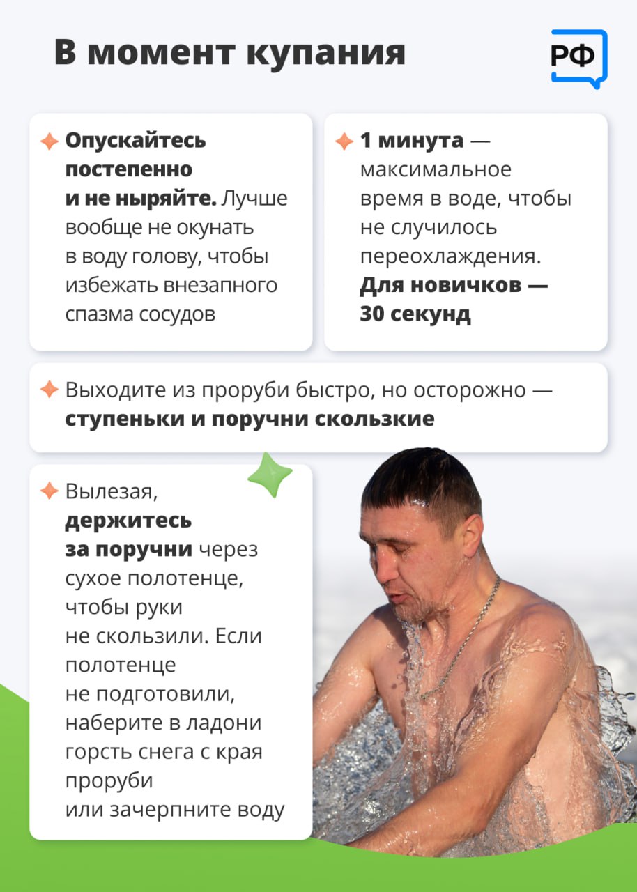 Где и как окунаться в прорубь, сколько можно находиться в воде и кому не стоит купаться — читайте в карточках