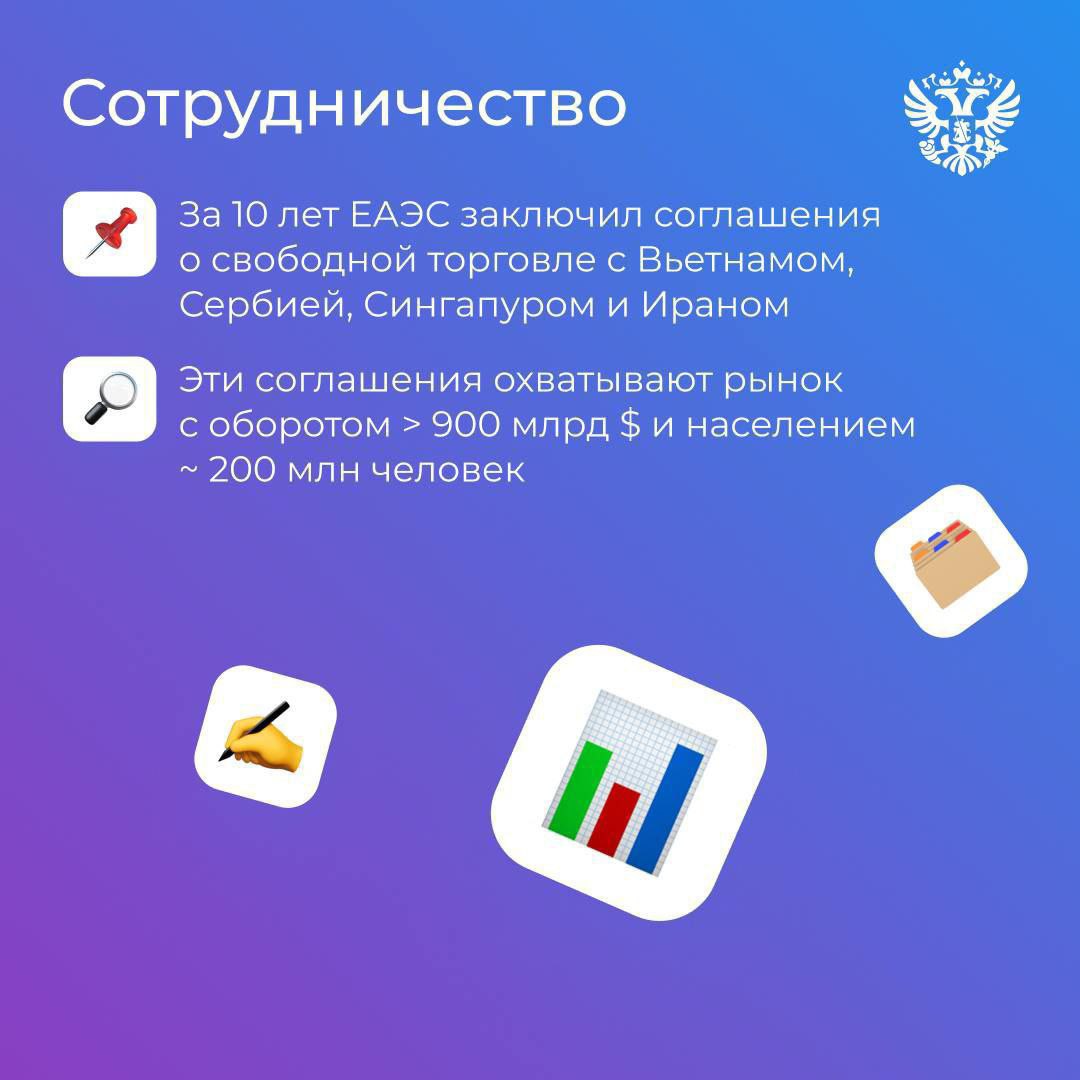 Сегодня ЕАЭС — это не просто союз соседей, а мощное объединение, которое строит новые торговые мосты по всему миру и создаёт комфортные условия для бизнеса.