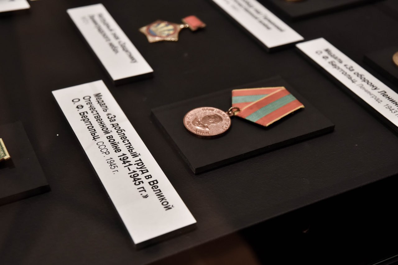 На выставке также представлены личные вещи Ольги Берггольц, блокадные издания ее произведений и макеты посвященных ей памятников. Кроме того, в экспозиции собраны личные вещи дирижера Карла Элиасберга — руководителя единственного оставшегося в блокадном городе оркестра.