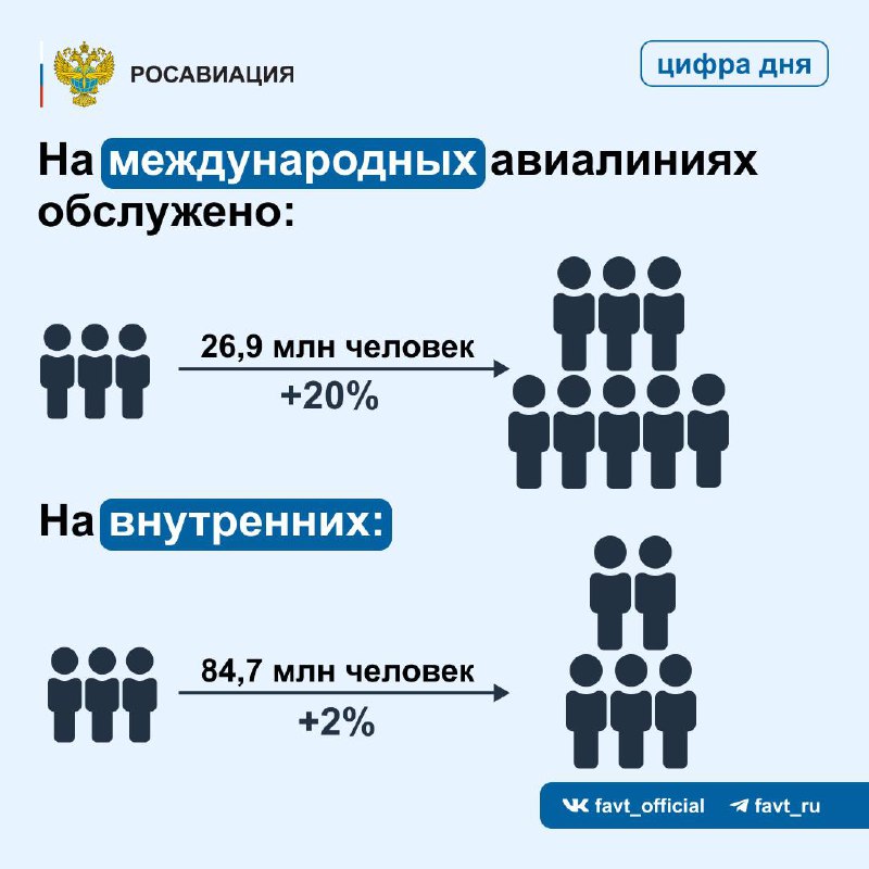 Суммарно в 2024 году они перевезли 97,2 млн человек: рост составил 6,9 % относительно 2023 года. «Показатели по безопасности полетов, рост авиаперевозок свидетельствуют о стабильном функционировании авиационной отрасли. Мы продолжаем модернизировать и реконструировать аэропорты, продуктивно занимаемся вопросами сертификации новой российской авиатехники, готовим молодых специалистов для нашей отрасли.