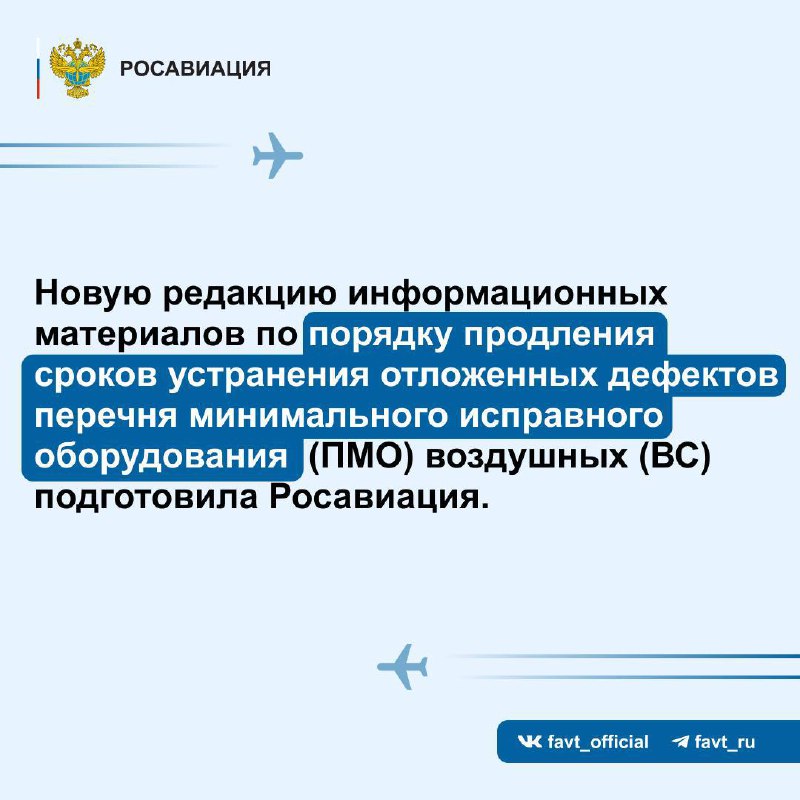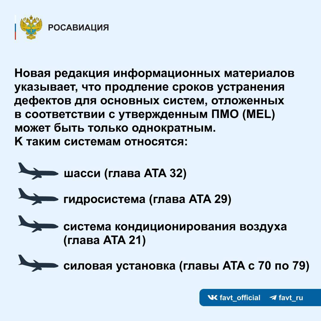 Они поясняют порядок продления сроков устранения дефектов и неисправностей, указанных в перечне ПМО (или MEL — Minimum Equipment List), эксплуатирующихся в нашей стране воздушных судов иностранного производства.
