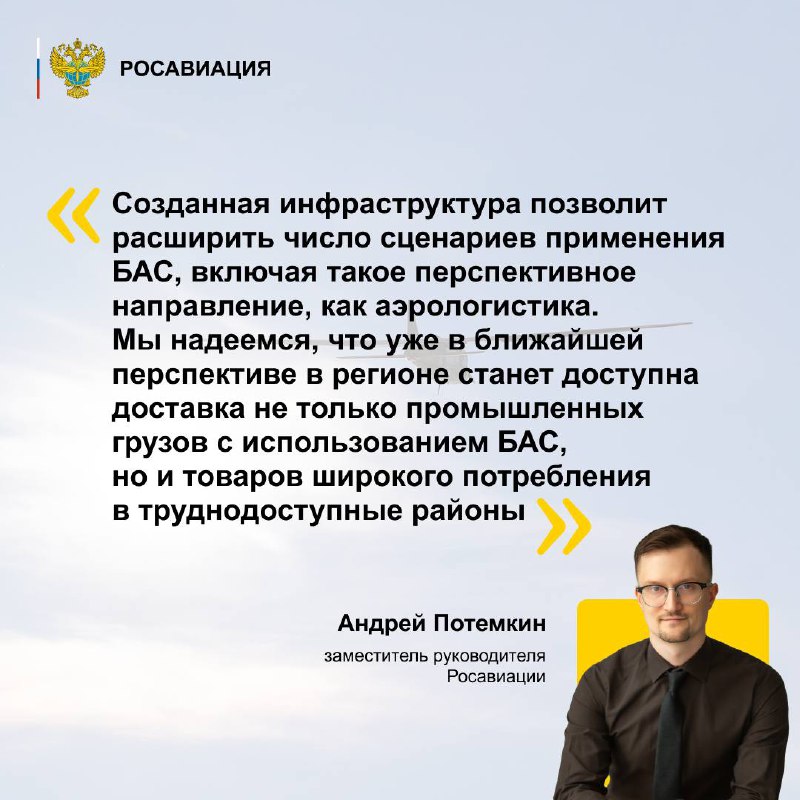 Теперь в регионе созданы все условия для испытаний новых моделей беспилотников. В открытии центра принял участие заместитель руководителя Росавиации Андрей Потемкин.