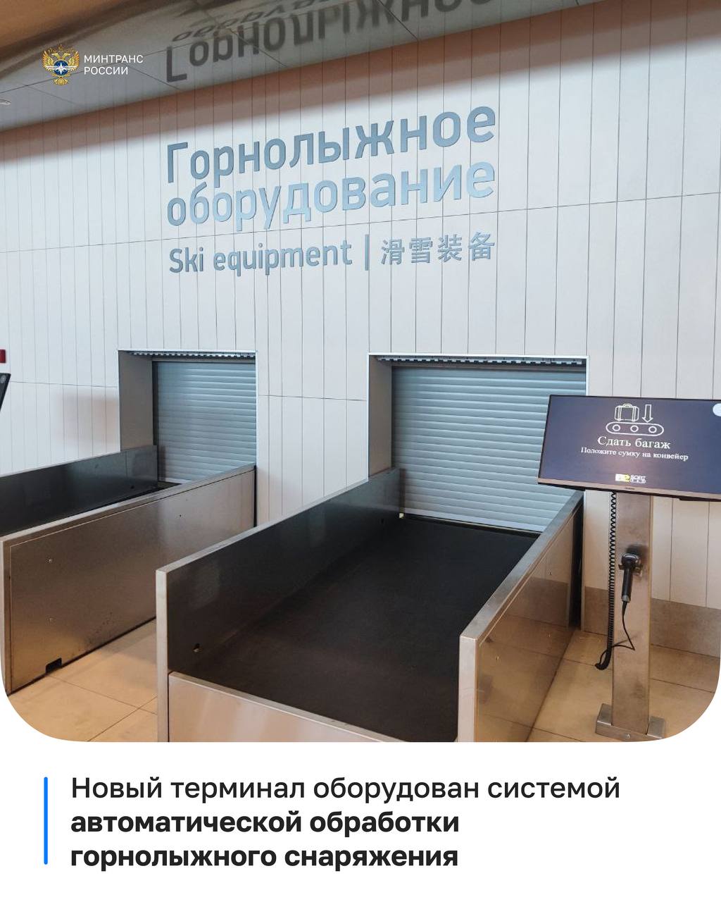 Новый терминал оборудован усовершенствованной системой предполетного досмотра и системой автоматической обработки горнолыжного снаряжения. Также здесь есть три телетрапа, что позволит пассажирам проходить в терминал прямо из самолета, не выходя на мороз.