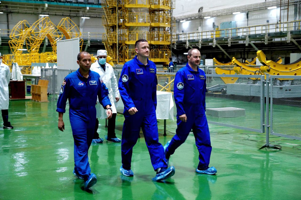На самом деле — ровно три раза. Да-да, по факту это не вторая примерка, а третья. Космонавты осматривают «Союз МС» не только на космодроме, но также на нашем предприятии в подмосковном Королёве, перед проведением заводских контрольных испытаний. Что логично, потому что при наличии серьёзных замечаний их лучше устранить до окончательной сдачи изделия. Так что «примерки» на Байконуре носят контрольный, скажем так, «шлифующий» характер. Три — счастливое число