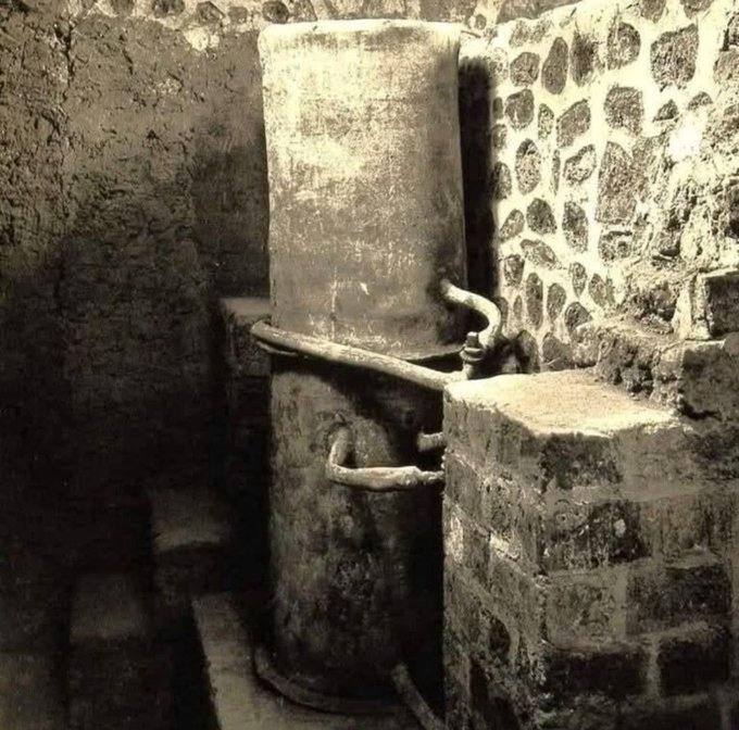 Котел находился в отдельном помещении — префурниуме, или котельной, как мы бы его сейчас назвали. Префурниум располагался значительно ниже всех других комнат, так как там находилась печь, отапливающая гипокауст (теплый пол) в бане на вилле.